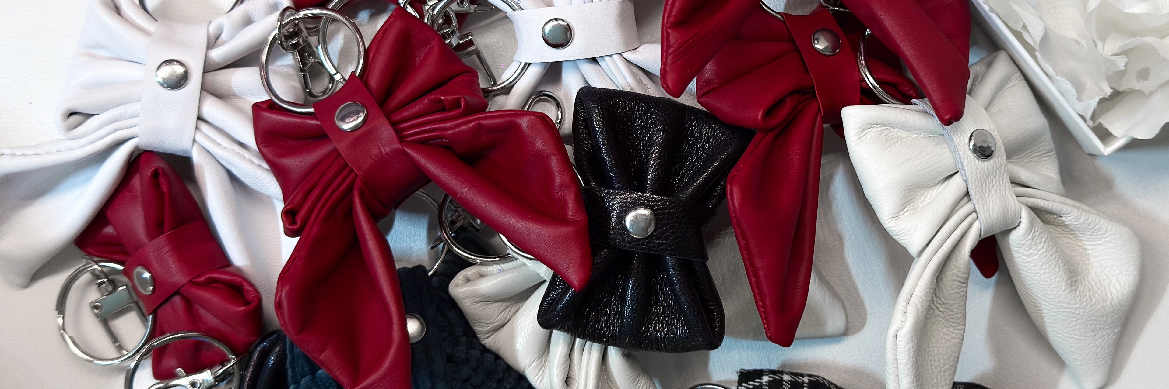 'BOWTIE' CALFSKIN LEATHER BAG CHARM IN RED