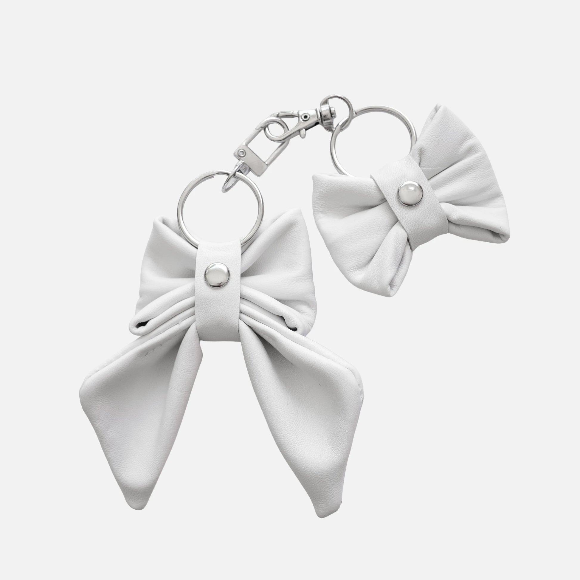 'BOW RIBBON' CALFSKIN LEATHER BAG CHARM IN WHITE